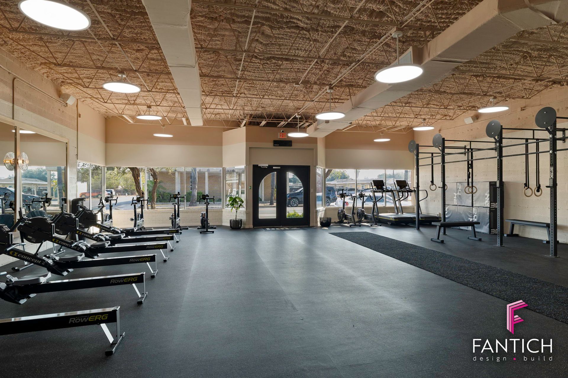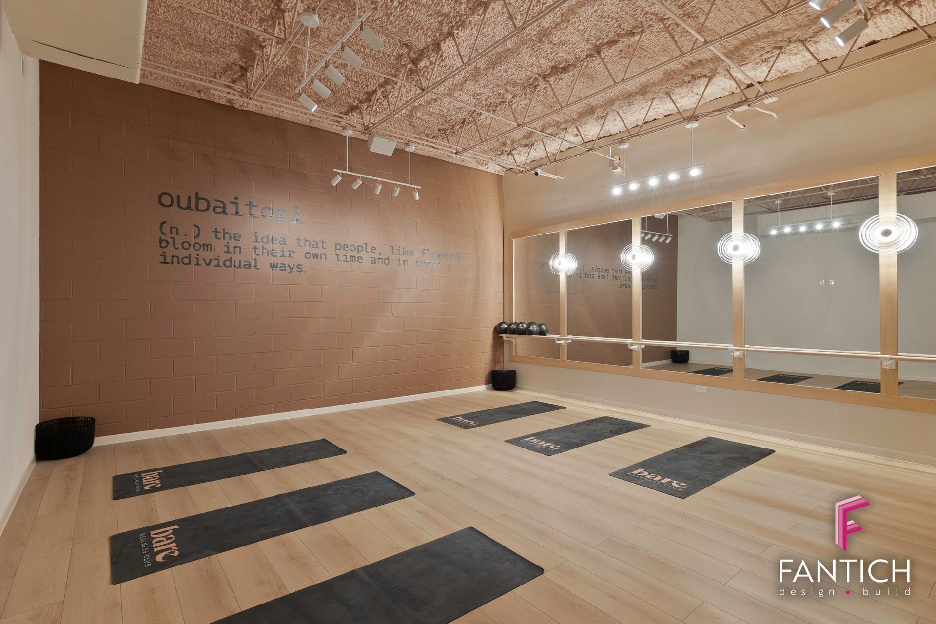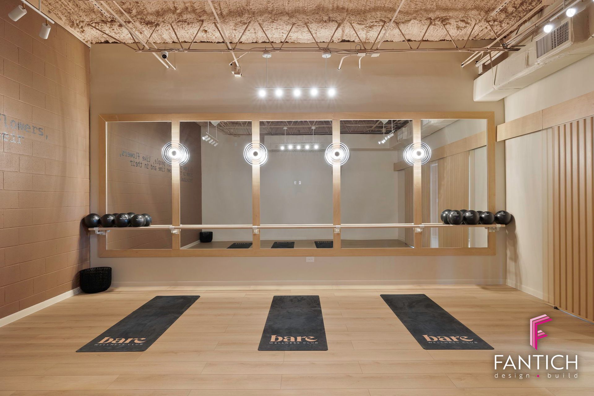 Our team designed and provided the commercial finish-out for this women wellness club that features a fitness gym, wellness lounge, yoga/barre studio along with cold plunge and a sauna area.