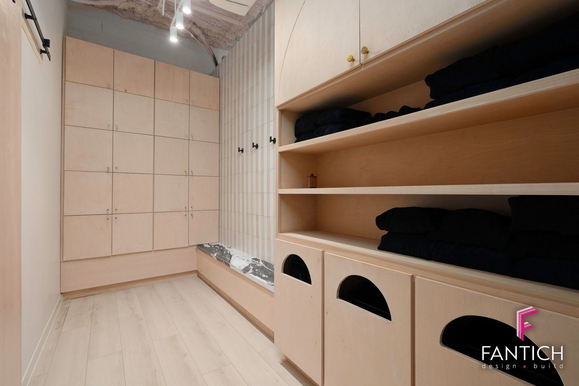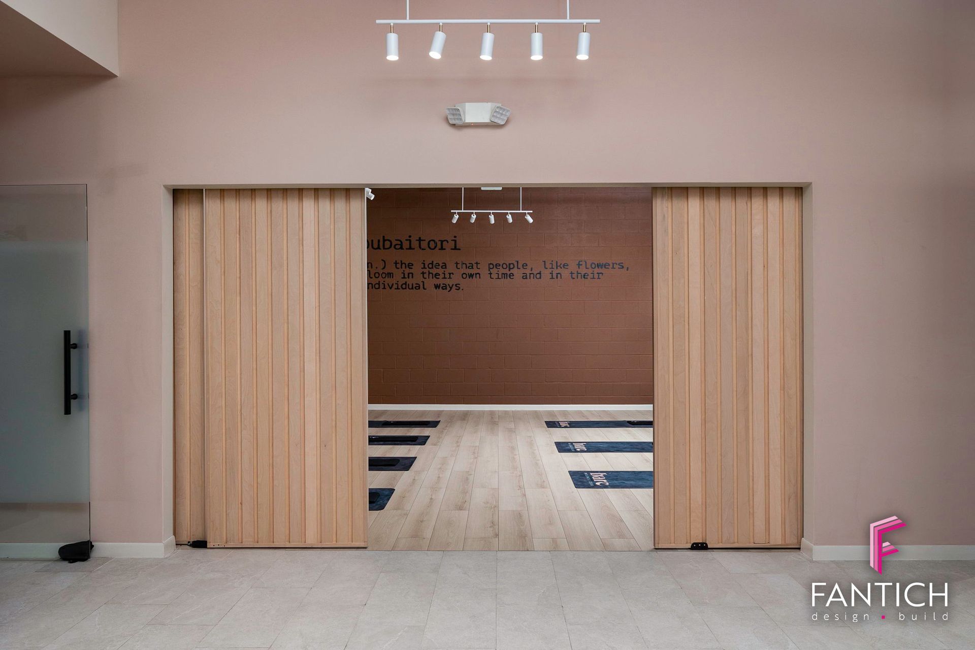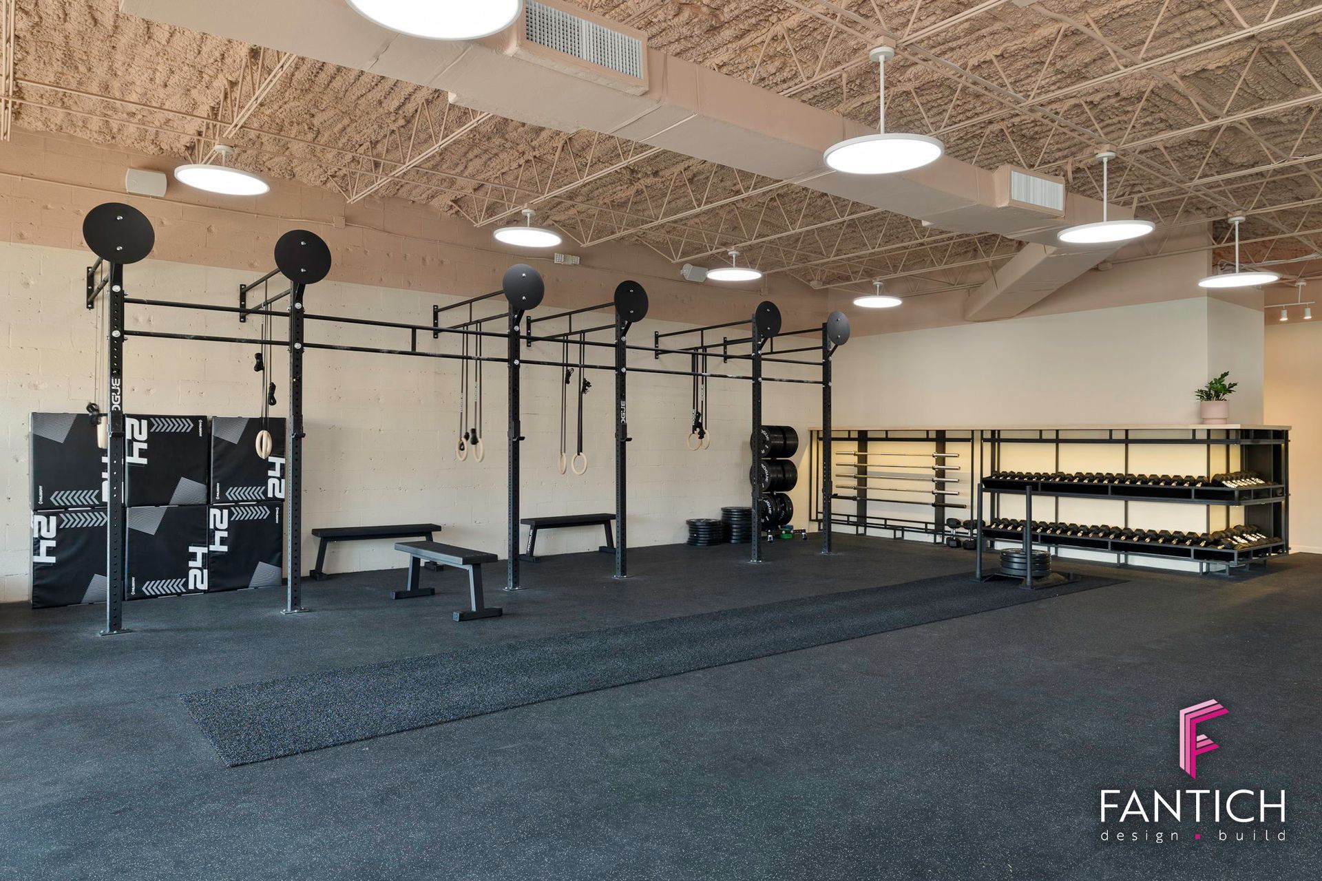 Our team designed and provided the commercial finish-out for this women wellness club that features a fitness gym, wellness lounge, yoga/barre studio along with cold plunge and a sauna area.