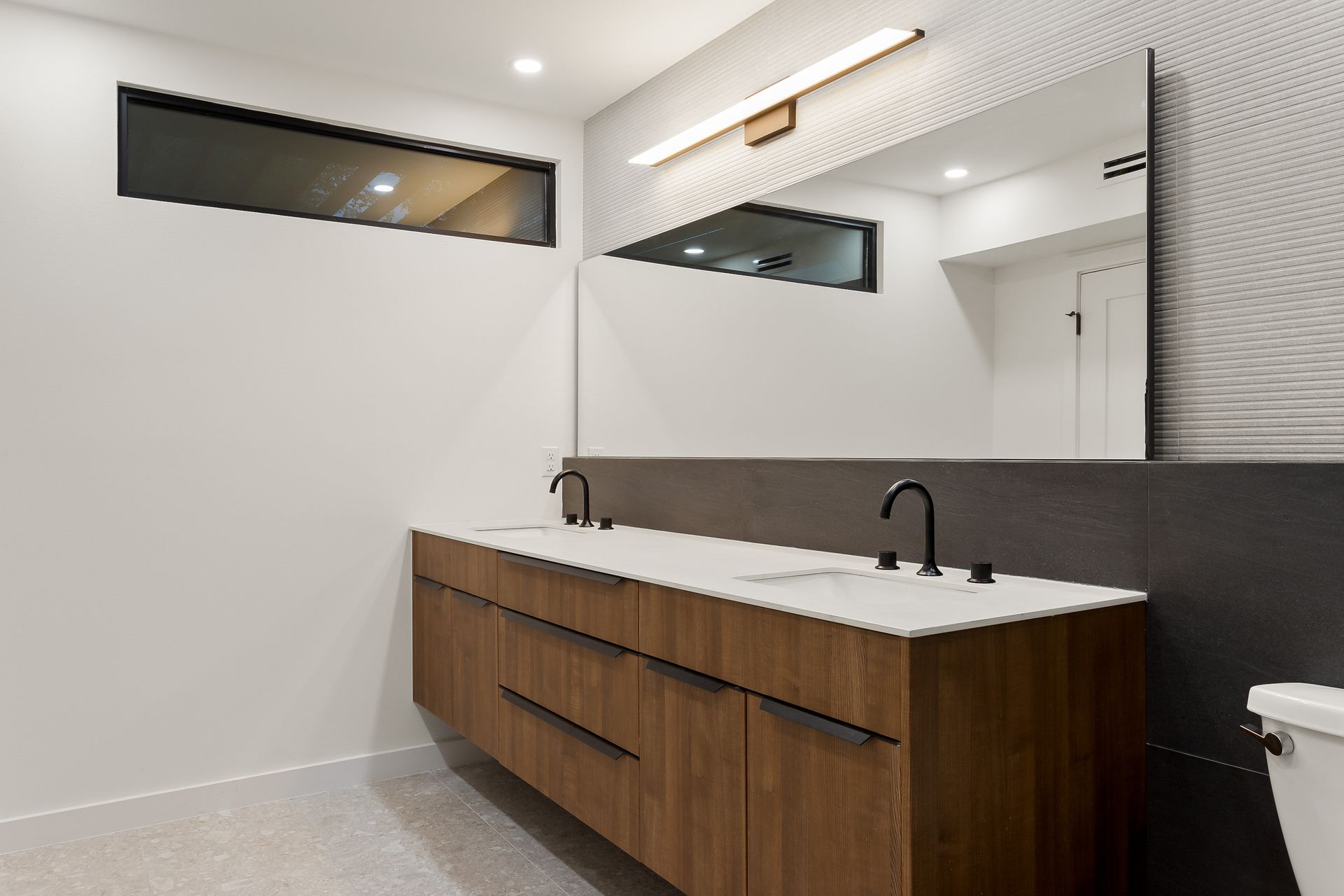 This 1973 home received a complete interior gut renovation. After completing an exterior facelift by the Owner, our team* stepped in to tear down walls, reconfigure the space, and finish it out. Beyond what you see, the true crucial aspects of this renovation were the brand new plumbing, electrical, and mechanical components that gave this house a new life.