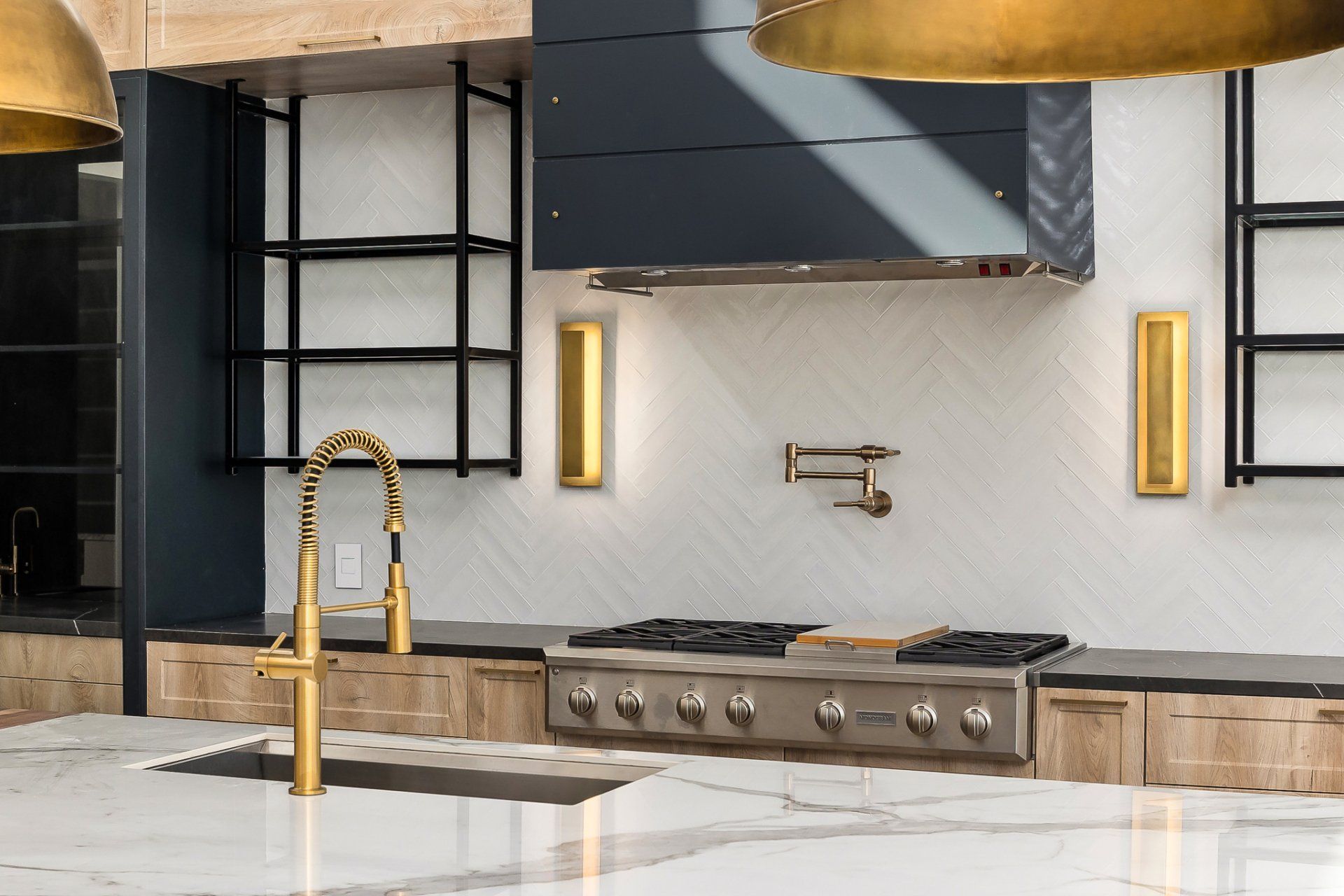 The interiors & construction team* stepped into this custom home 2 years into it's renovation. The team provided floor plan adjustments, select interior finish selections & construction finish-out of key features for this beautiful lakeside home. Work included custom European millwork, porcelain slab installation, custom metal and wood work, and tile work. A truly one of a kind home.