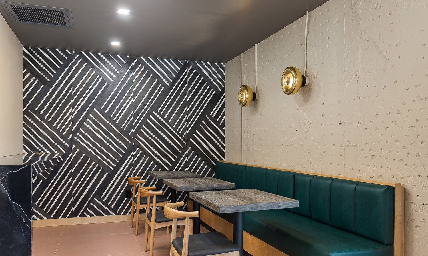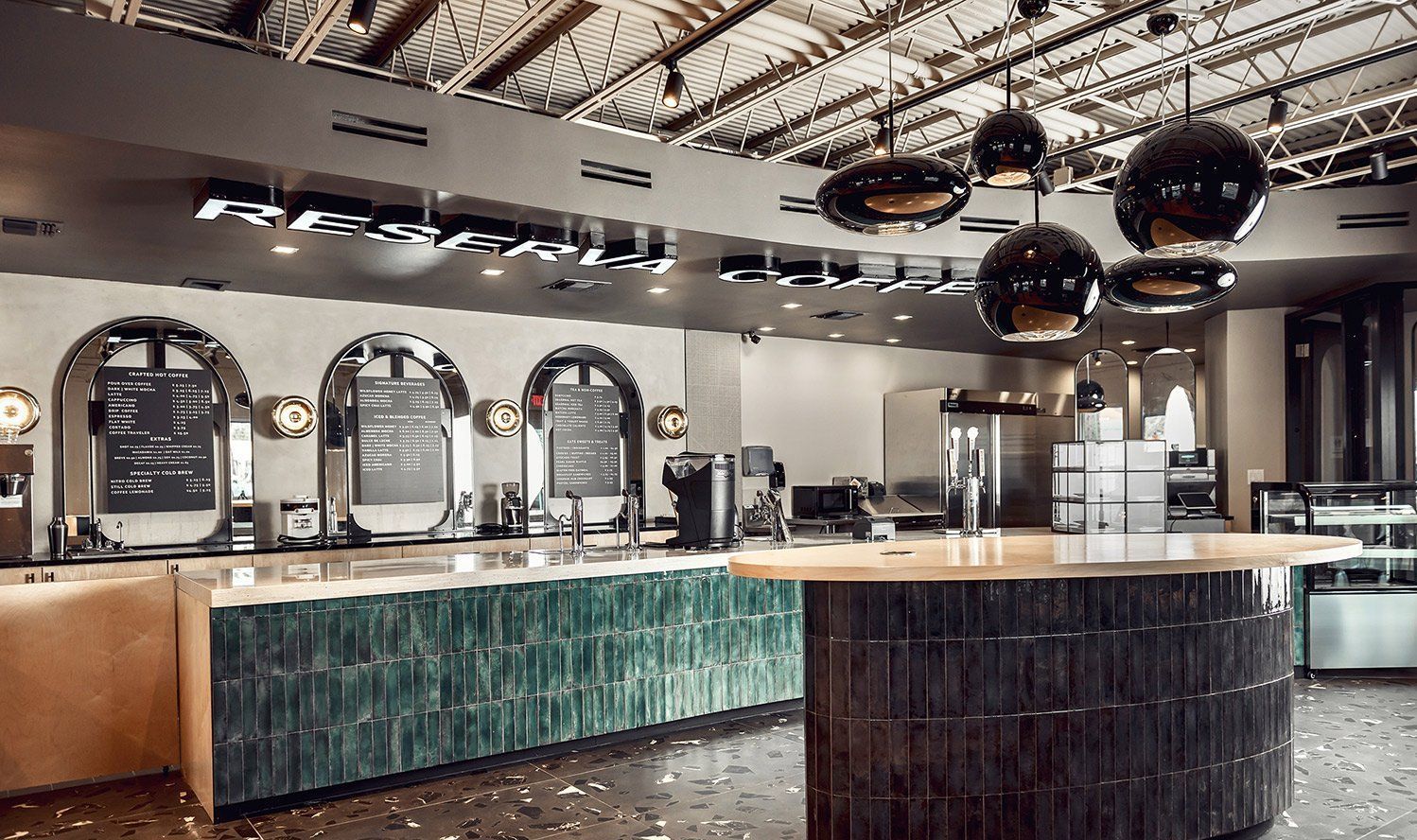 This space was once a coffee shop... yet, we had to gut it and transform it into a new coffee shop. Our team* rolled with the punches as existing build issues and design coordination issues came to light. We were able to provide a complete gut renovation and create a standout space filled with visual interest.